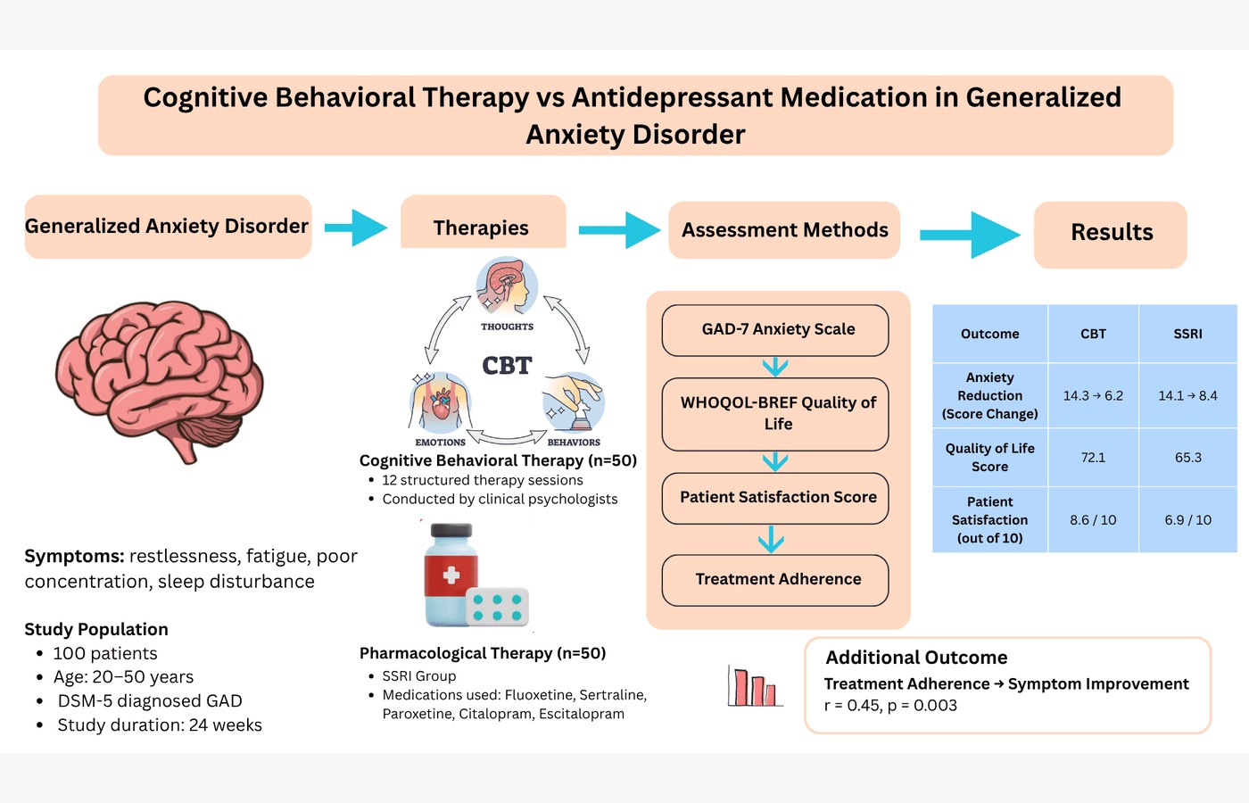 Cognitive Behavioral Therapy Versus Antidepressant Medication in Generalized Anxiety Disorder: A Prospective & Novel Approach